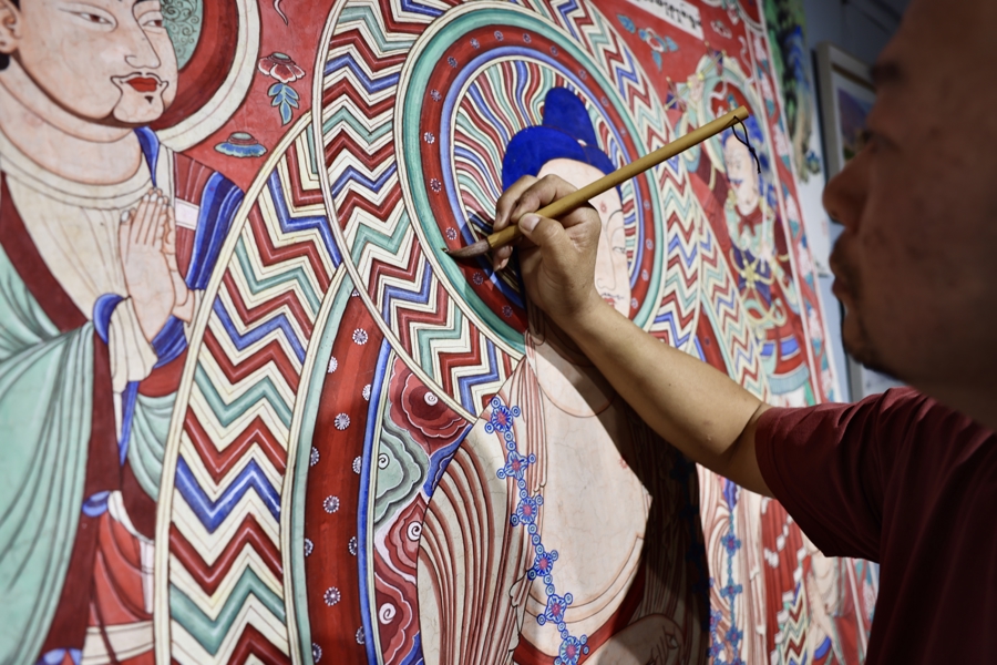 赴韩前,邓永红第一次走进第15窟。“当时我懵了,大量壁画被盗走,只剩墙体斑驳,该怎么做?”徐东良告诉她:什么都没有,才需要有人去做。