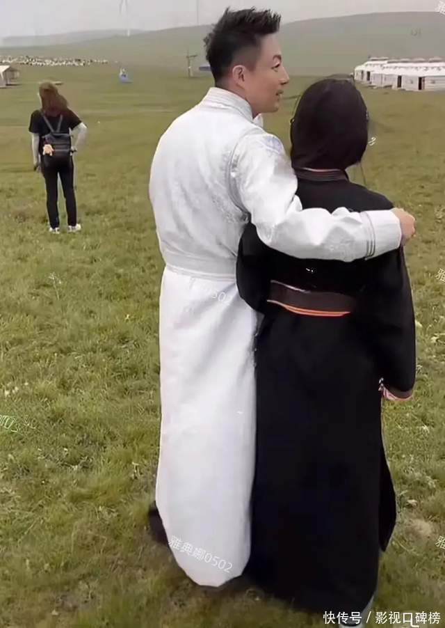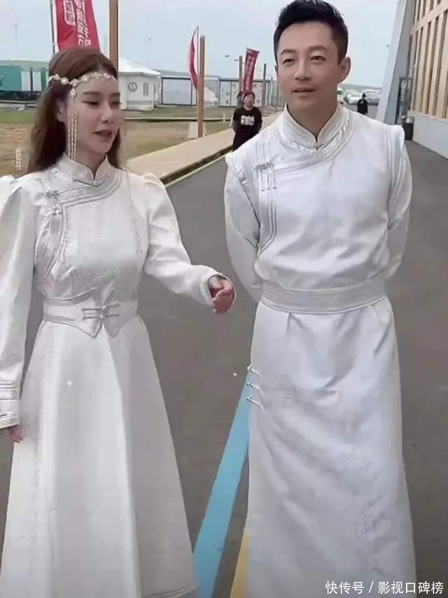 汪小菲夫妻俩穿着白色蒙古族的传统服饰,马筱梅
